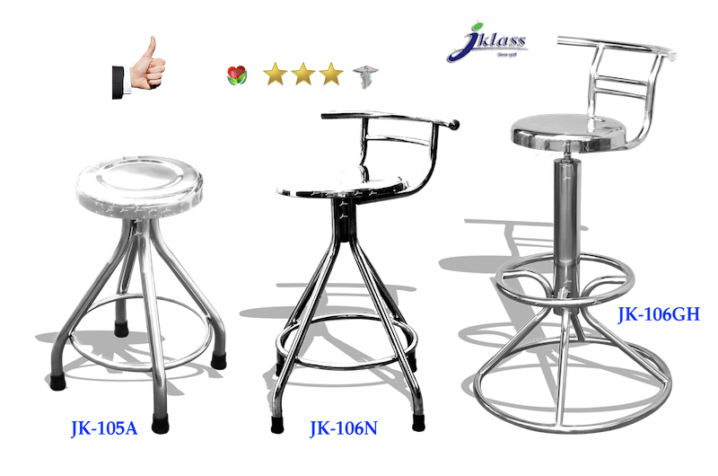 JK-105N เก้าอี้กลมสเตนเลสปรับระดับได้มาตรฐานไม่มีล้อ