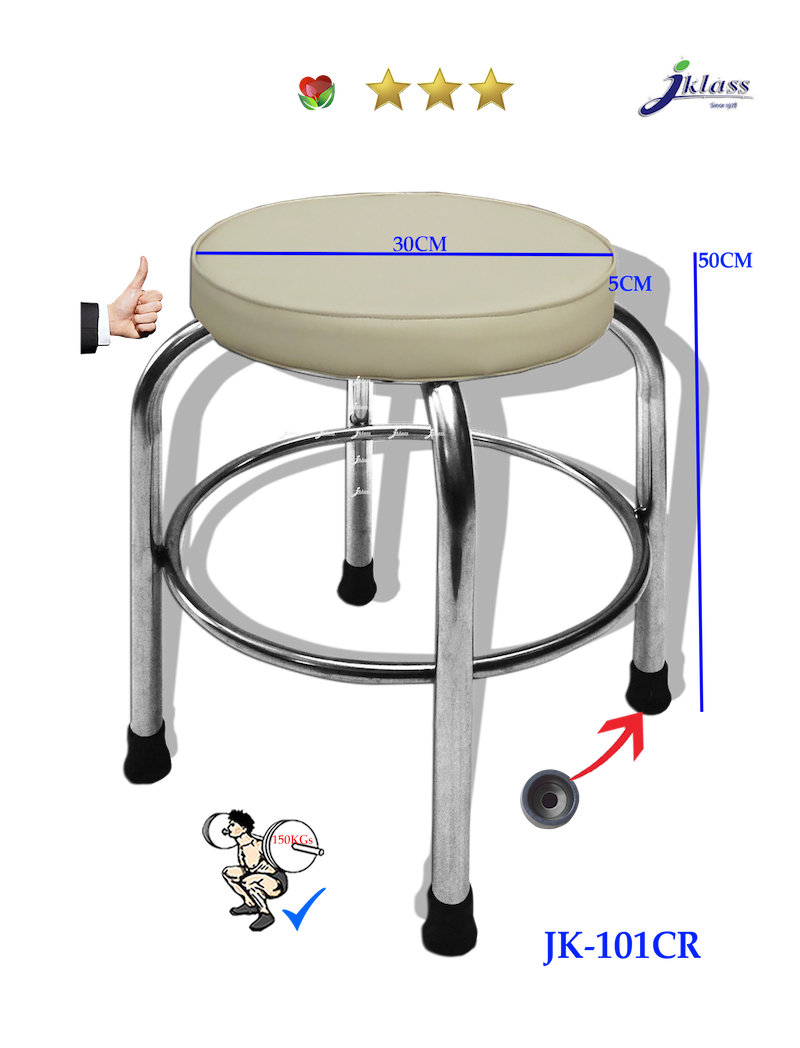 JK-101CR สตูลกลมมีห่วงที่นั่งเบาะ ๓๐ ซม.หนา ๕ ซม.
