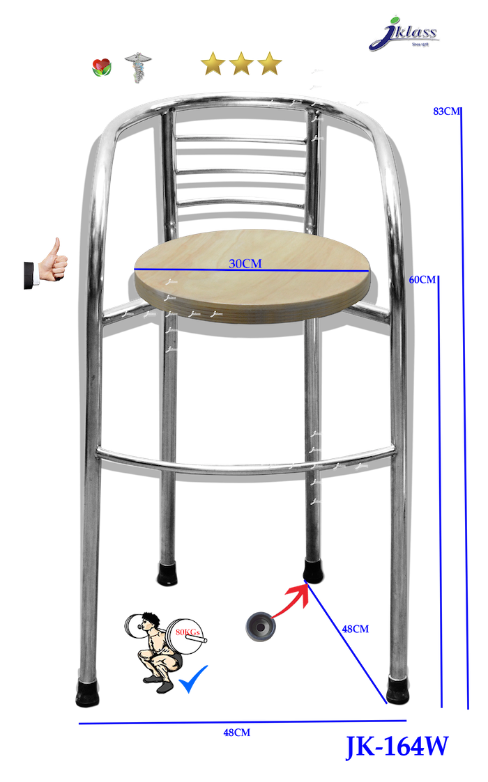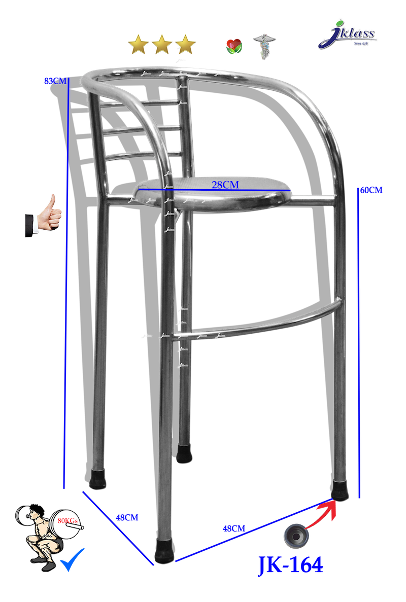 ขนาดรวม กว้าง ๔๘ ซม.ลึก ๔๘ ซม.ที่นั่งสูง ๖๐ ซม.พนักพิงสูง ๘๓ ซม.