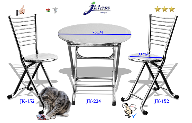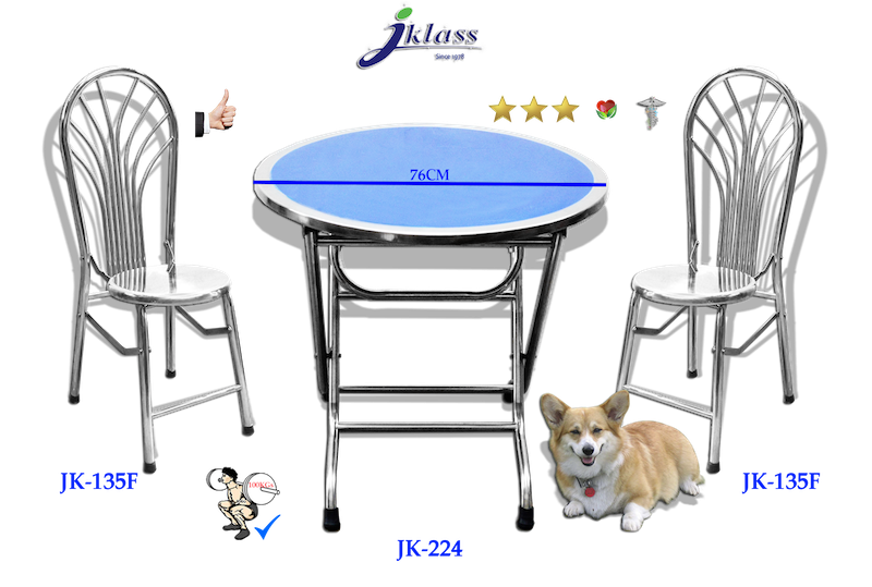 โต๊ะสเตนเลสกลมพับขาโค้งตั้งได้ รุ่น JK-224