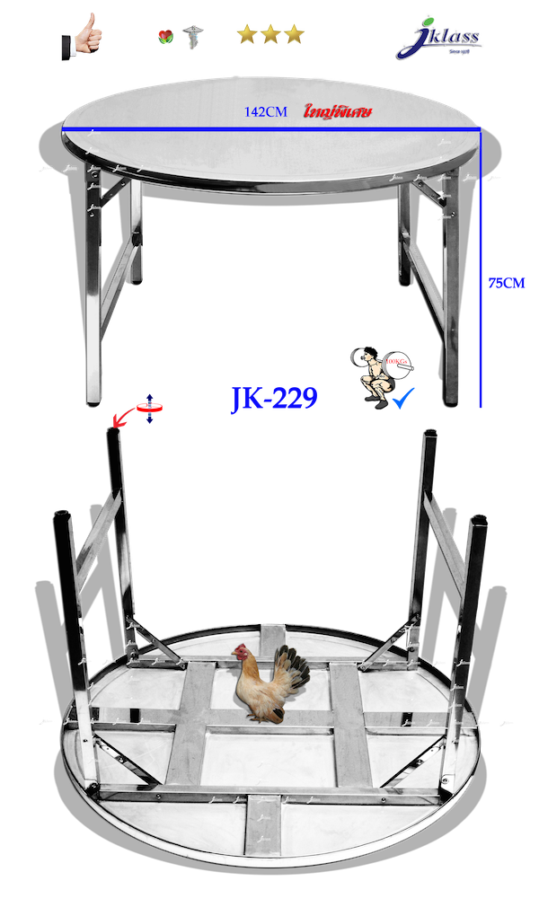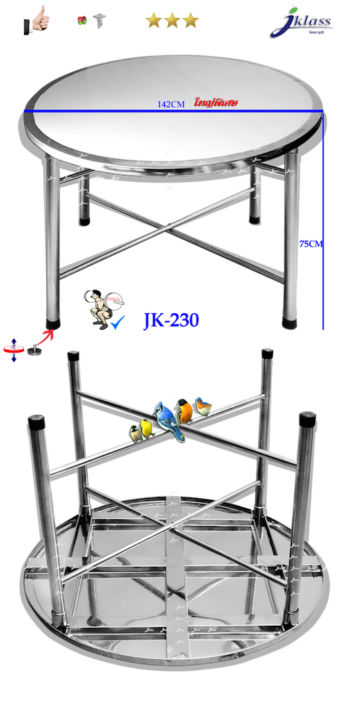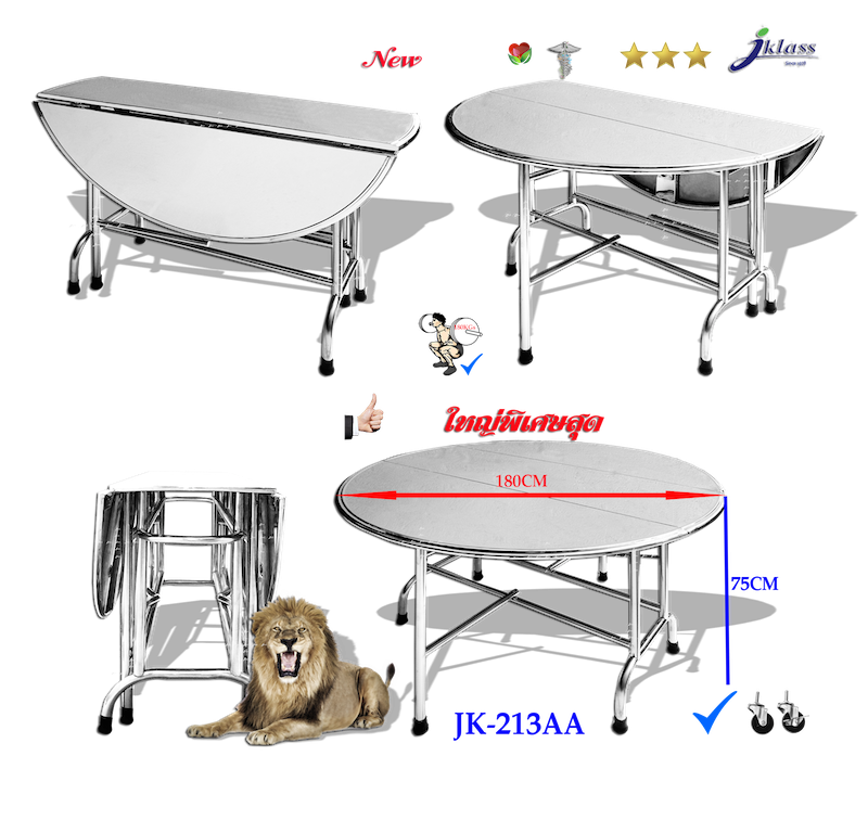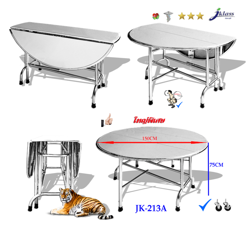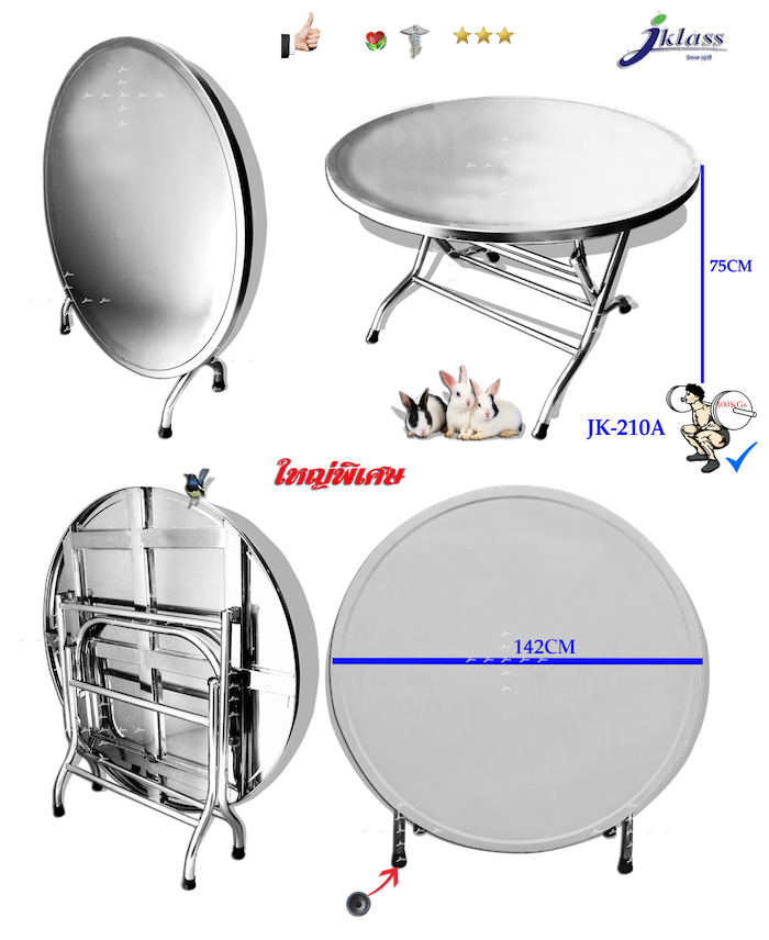 โต๊ะสเตนเลสกลมพับขาโค้งตั้งได้ รุ่น JK-210A