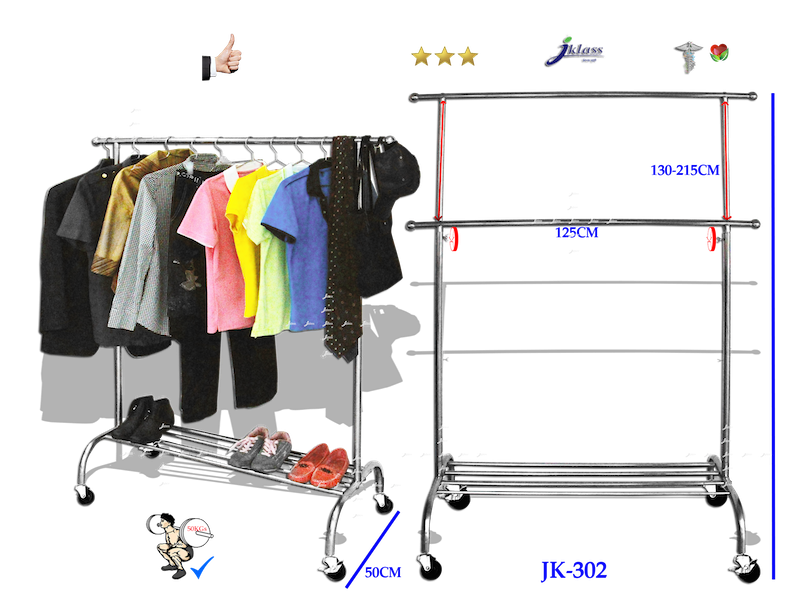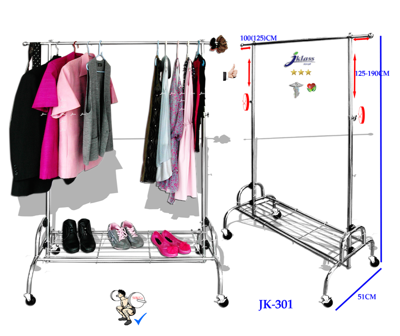 ราวเดี่ยวสเตนเลสแบบเดอลุกซ์มีล้อ JK301