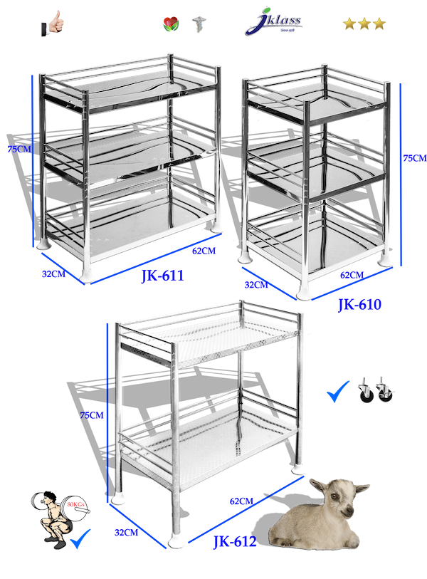 ชั้นสเตนเลสราวคู่ไดอาน่ากว้าง ๒ ชั้นมีล้อ JK612