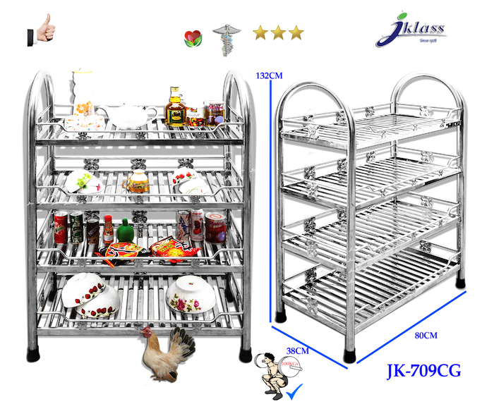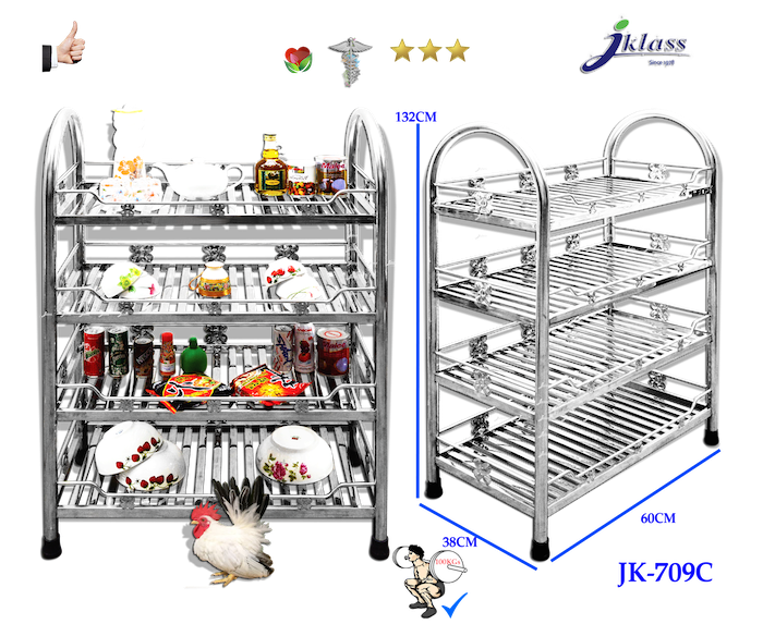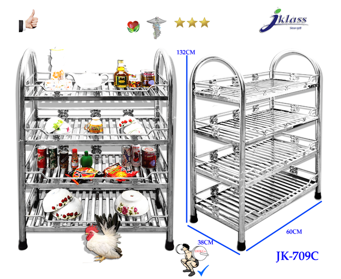 ชั้นสเตนเลสแบบท่อเหลี่ยม ๔ ชั้นเสาโค้ง JK709C