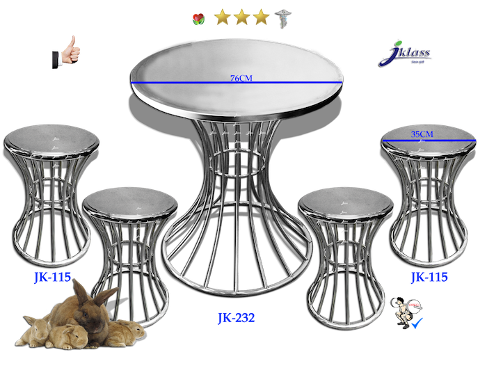 โต๊ะสเตนเลสกลมสายฝนเงินหน้ากระจก JK232G