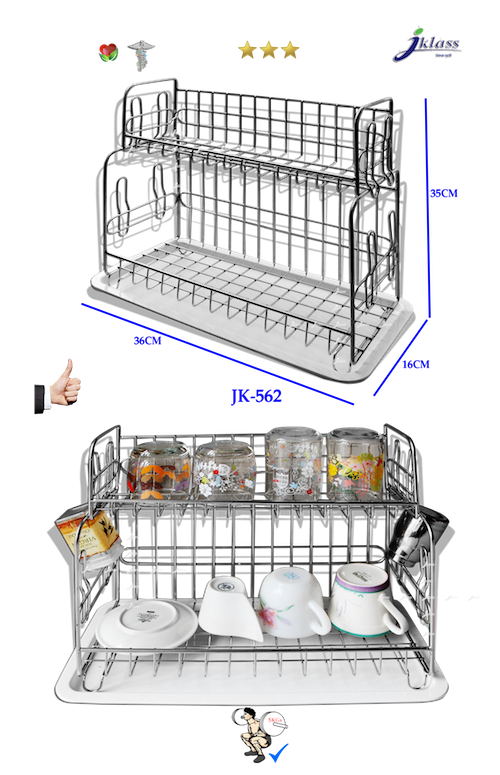 ชั้นวางแก้วสเตนเลส ๒ ชั้นพร้อมถาดรองน้ำ JK562