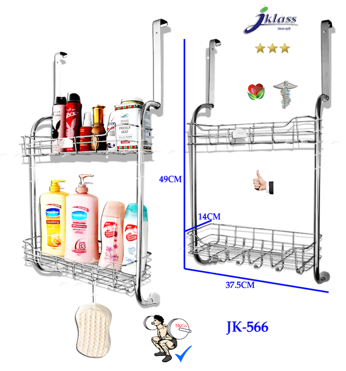 ชั้นแขวนขอบประตูสเตนเลส ๒ ชั้น ๕ ตะขอ JK566