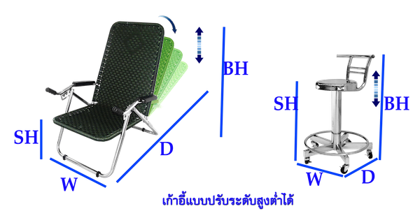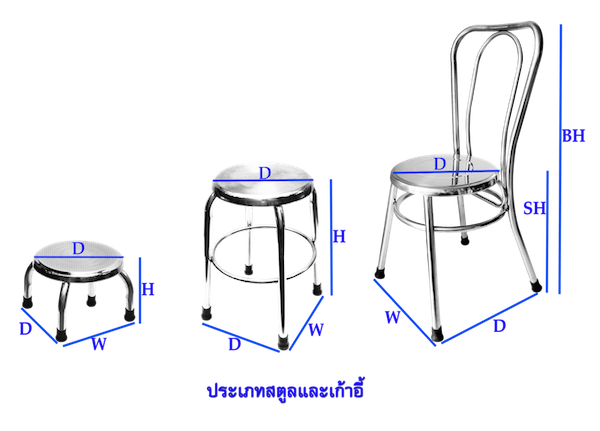 ส่วนเก้าอี้เตี้ยจะมีพื้นที่นั่งสูงจากพื้น 30ซม.