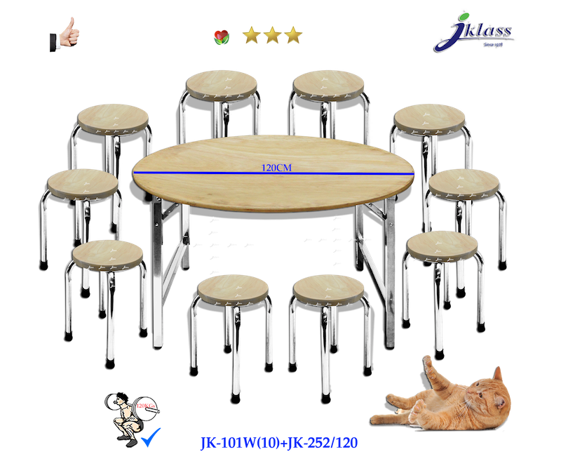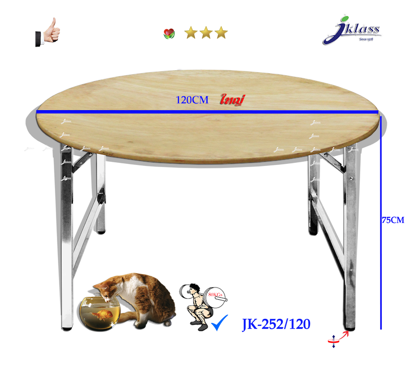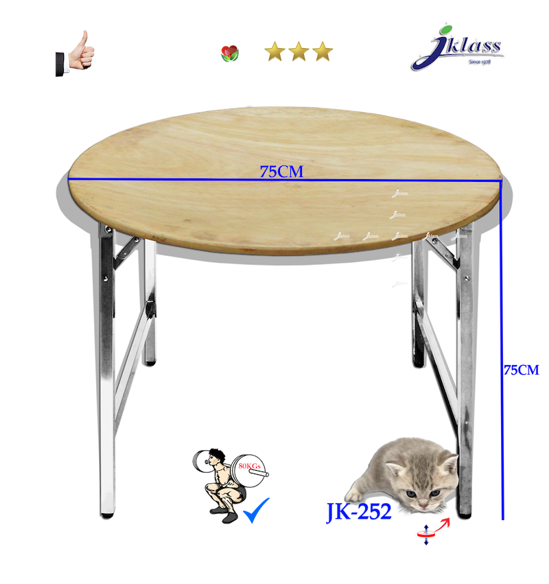 โต๊ะอเนกประสงค์สเตนเลสหน้าไม้กลมขาพับสวิง JK252